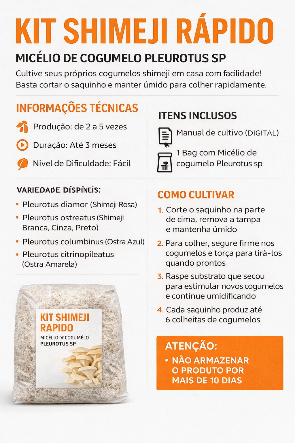 Kit Shimeji Rápido – Micelio de Pleurotus sp